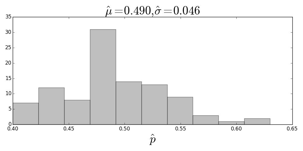 Well, that seems to work! Now we have a way to get at the quality of the estimator, $\hat{p}$.